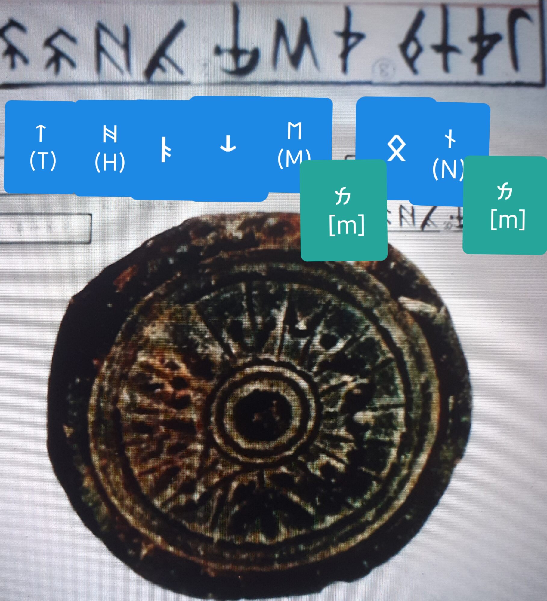 ➡ フェニキア語 𐤌 シリア語 ܡ ➡ 中国漢の文字と日本の古代文字にもよく見える文字