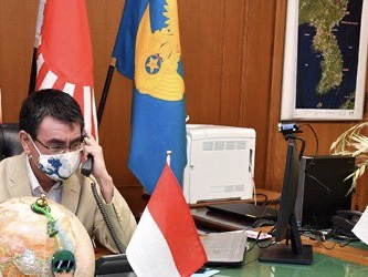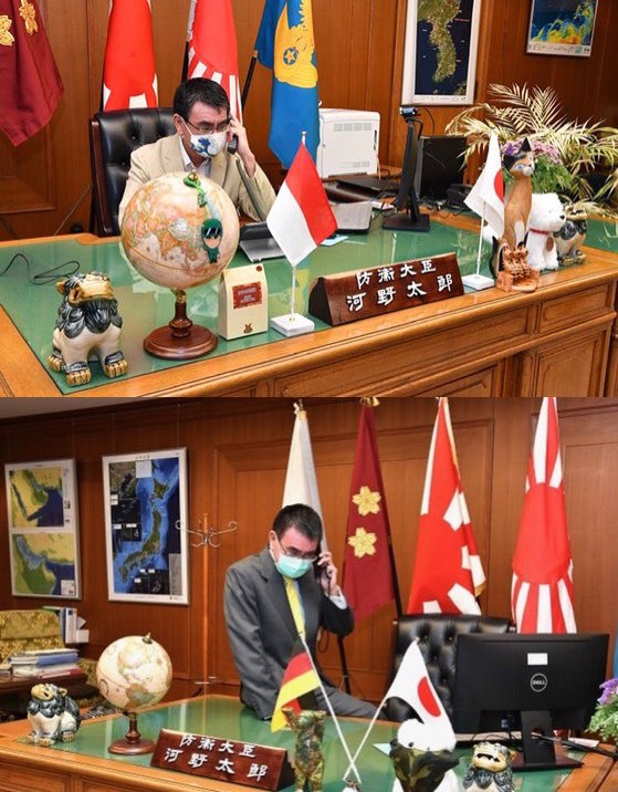 もし侵略野心があるとして、半島にどんな価値があるんだ?>>20国旗はそれぞれインドネシアとシンガポールの国旗(似ているが🇮🇩🇸🇬よく見ると違う)。インドネシア・シンガポールと電話会談したという写真。インドネシアとアジアの安全保障について話しているのだろう。写真のアングルは意図的に朝鮮半島の地図を入れたと思われる。