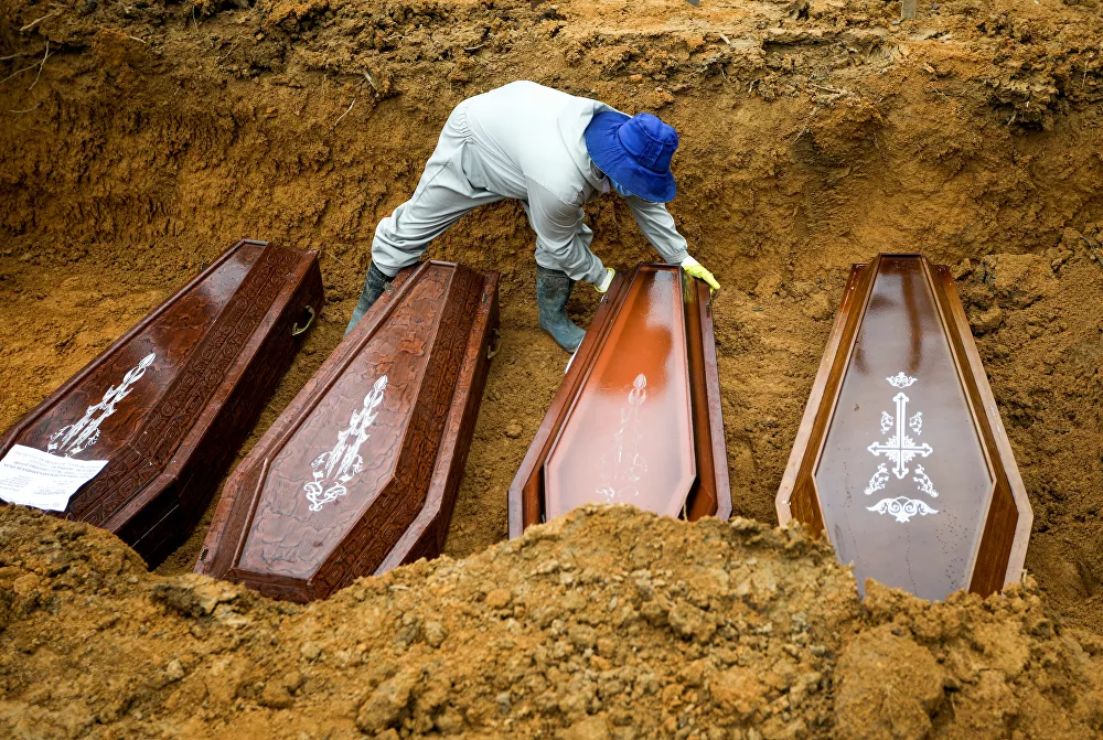 ブラジルではすでに今、コロナウイルスによる遺体処理に棺を段重ねにして埋めるという大量埋葬の手段に走らざるをえなくなっている。ブラジルではCOVID-19の検査はあまり行われていない。