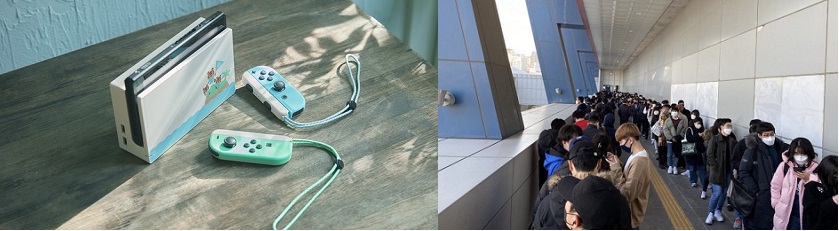 中でも話題作"どうぶつの森"は発売11日間で、全世界で1、177万枚が売れるなど、大ヒットした。 コロナ19で中国工場でスイッチの生産が中断され、韓国ではスイッチとどうぶつの森のゲームタイトルを手に入れるため大乱が起きた。 "どうぶつの森"の発売に合わせて"どうぶつの森エディションスイッチ"が同時に発売され、数十万ウォン台のプレミアムまで付いた。 子供の日まで、大手スーパーや小売店を中心にスイッチ購入の列が増えるなど、"コロナ19"や"日本不買運動"のような外部要因にも関わらず、"どうぶつの森"の人気はびくともしない。