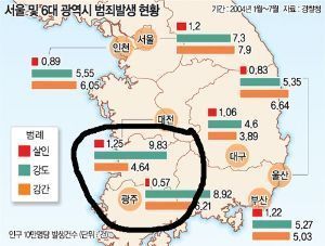 韓国人と全羅道(土着華僑中国人)の犯罪率は