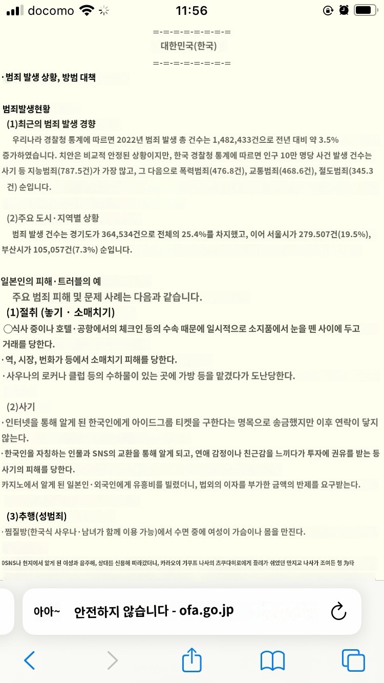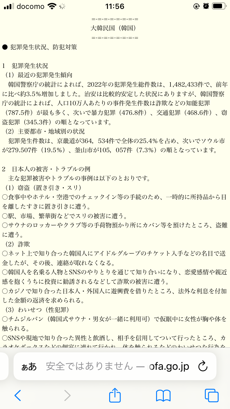 スクショは一部で韓国の犯罪勧告はまだまだ下に続く