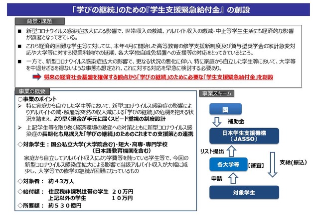 政府が大学生1人に現金20万円