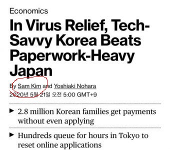 韓国の280万世帯は給付金の受給に全く時間がかからなかった。申請しなくても自動的に銀行口座に振り込まれたからだ。