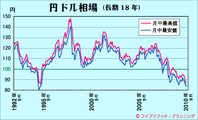 幻想>>22 円安だったぞ。株価も異常だったし。美化してないぞ。当時はマジで世界一の経済国に手が届いてた。