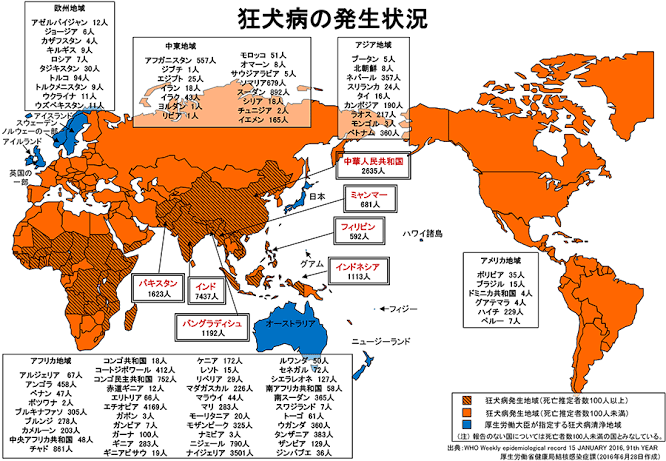 世界的には、「狂犬病清浄国」の方が圧倒的に少ない。