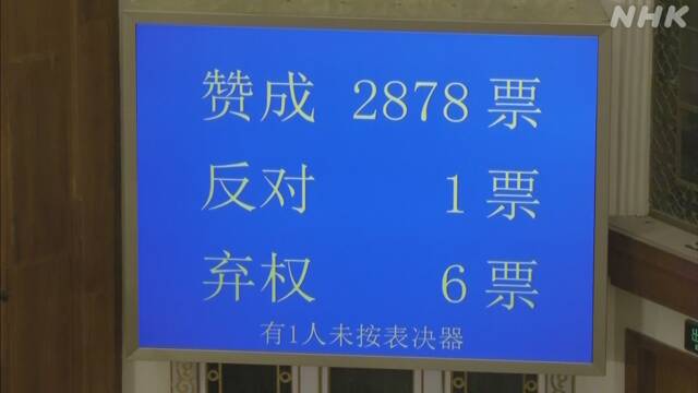 中国の全人代は28日、最終日を迎え、日本時間の午後4時すぎから北京の人民大会堂で習近平国家主席らが出席して議案の採決を行いました。
