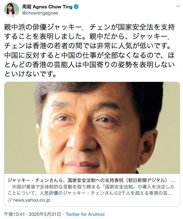 ジャッキー・チェンとチョウ・ユンファはなぜ「香港保安法」ニュースに召喚されるか