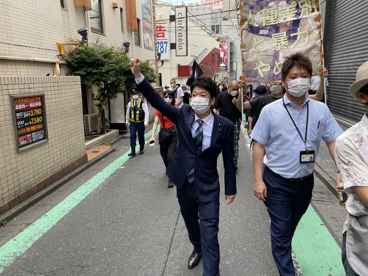 渋谷署前のデモ、立憲・石川大我議員の後ろに米大統領がテロ組織と認めた『ANTIFA』の旗 → 石川議員、ツイート削除…