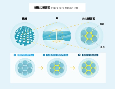 村田製作所と帝人フロンティア「動くだけで“抗菌作用“を発揮する繊維」共同開発
