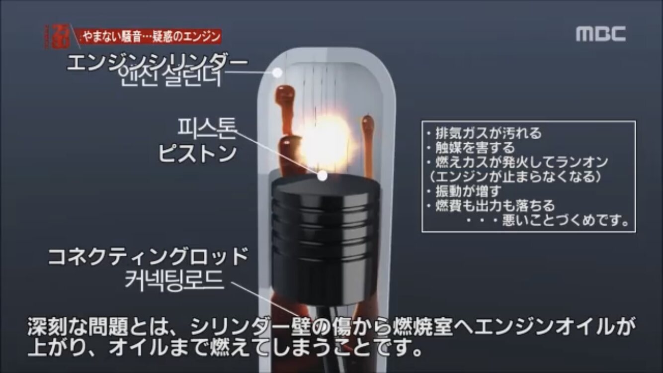 >現代車は、問題の原因がカーボンの累積のためだと