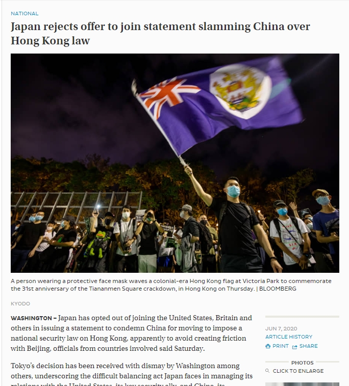 https://www.hankookilbo.com/News/Read/202006071326085073?did=NA&dtype=&dtypecode=&prnewsid=>>1 일본、"国家安全法"導入…批判声明に参加せず