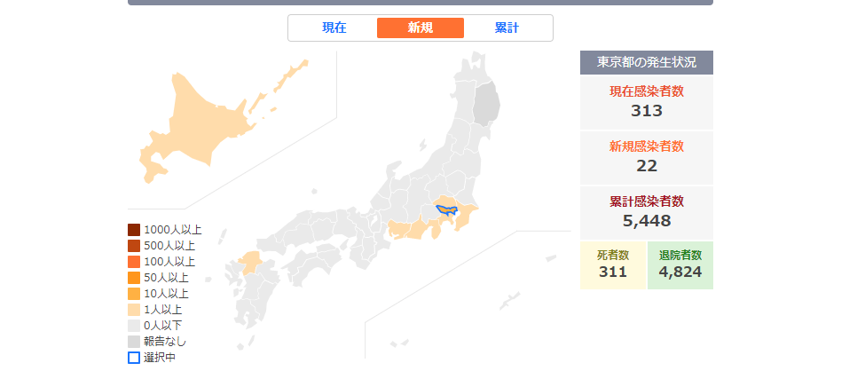 https://kaikai.ch/board/99307/ 参考。人口1400万人の東京都で現在の感染者が300人程度でしょ?