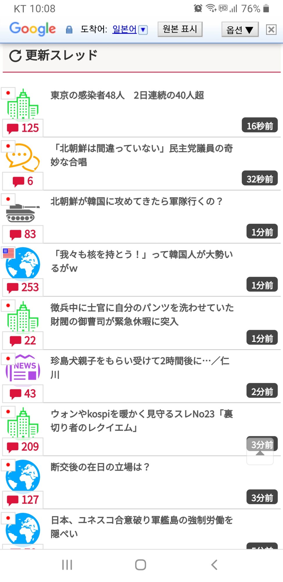 日本のサイトに書き込むのは親日じゃねーの?주적은 일본