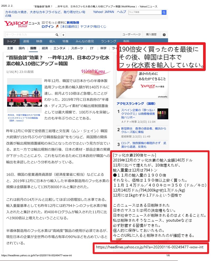そのため、フッ化水素をずっと同じ容量で輸入しない。>>480 당신 또 거짓말 하는가?