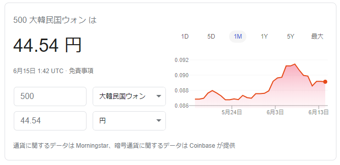 それにしてもウォンって38年間で価値が4分の1に落ちたんだね。そういえば韓国で50000ウォン札が不足しているらしいが、韓国人はウォン通貨なんて溜め込んでどうするんだろう?