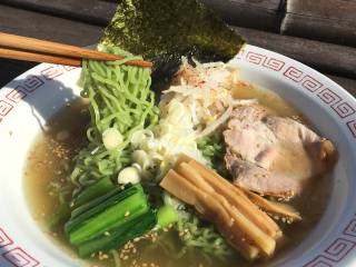 新潟県に行くと、『へぎ蕎麦』とか『へぎうどん』というのもあります。これはツナギに海藻の布海苔を使っているので緑色。>>128