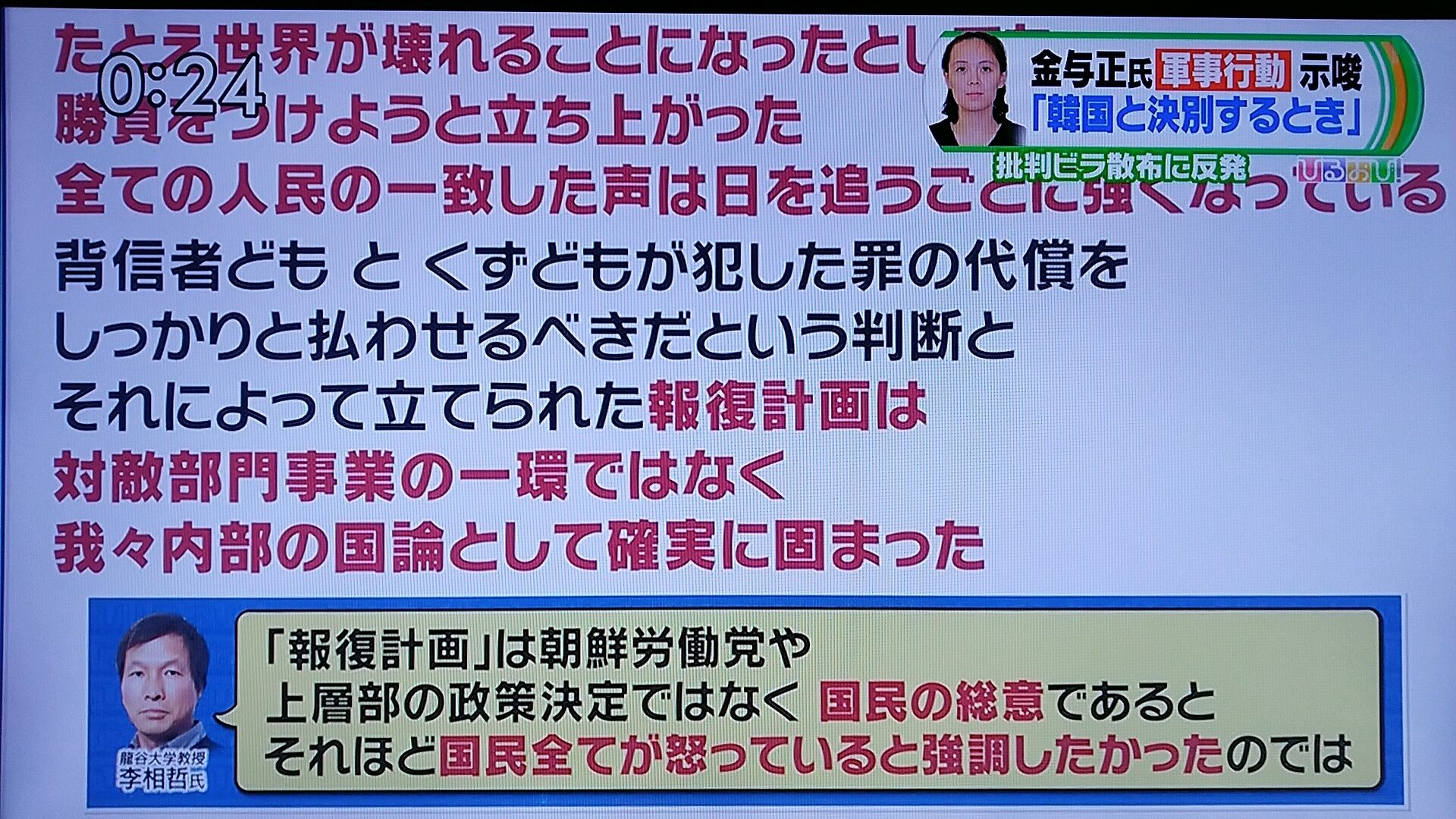 どうすんだ?まだ北のケツ追いかけるのか?今ニュースで連絡事務所完全爆破と速報してるな。これは朝鮮戦争再開待ったナシか?