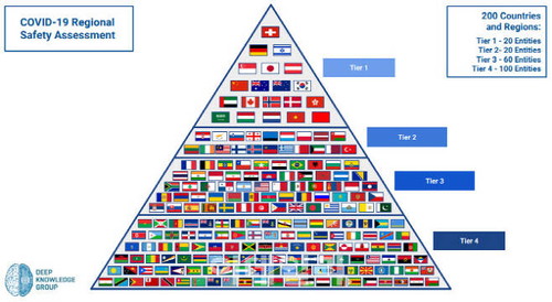 Deep Knowledge Groupは、130のパラメーターと11 400のデータポイントに基づいて国と地域をグローバルに評価し、COVID-19パンデミック時の安全性とリスクレベルを判断しました。
