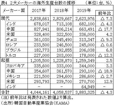 機亜現代合計で2019年の米国生産台数は60万台程度、インドや中国での生産台数の半分くらい。