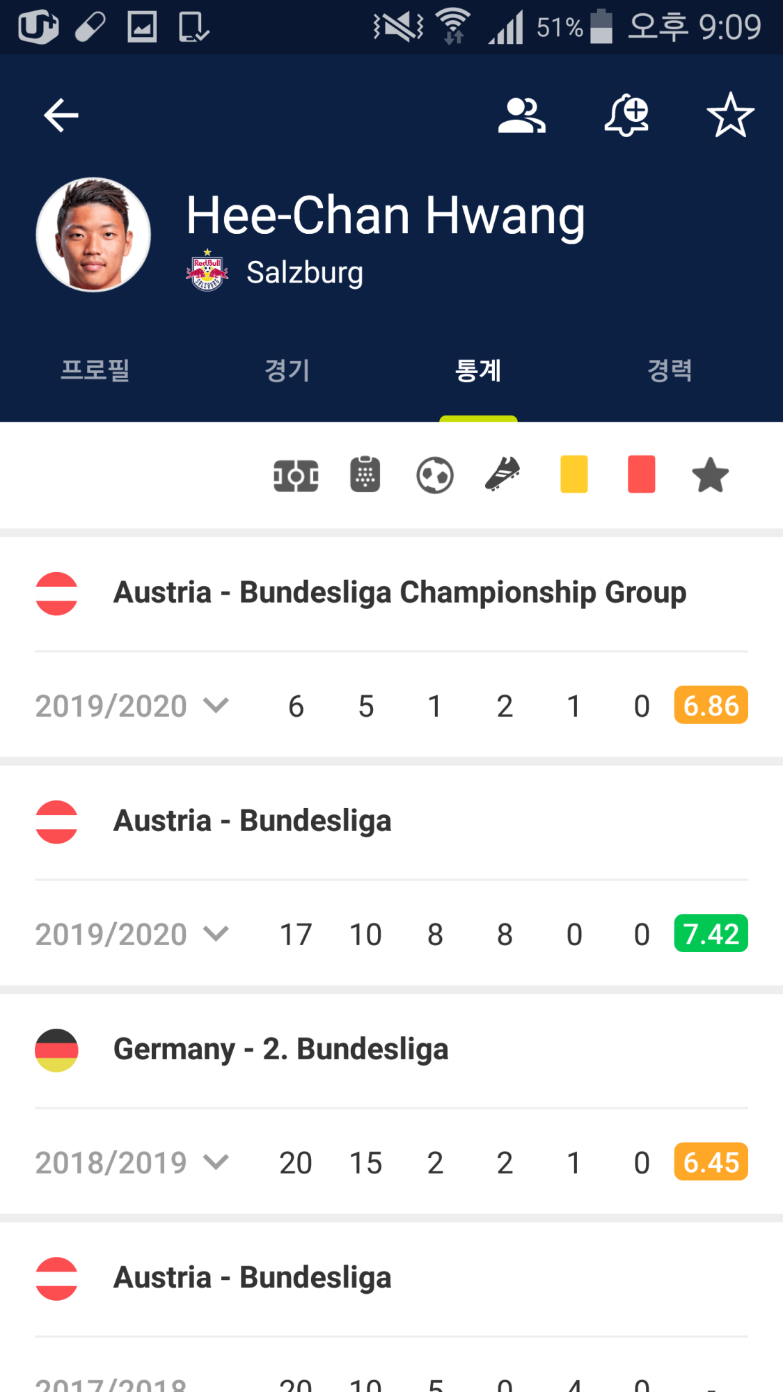 황희찬 잘츠부르크 총합->122경기 43골 27도움