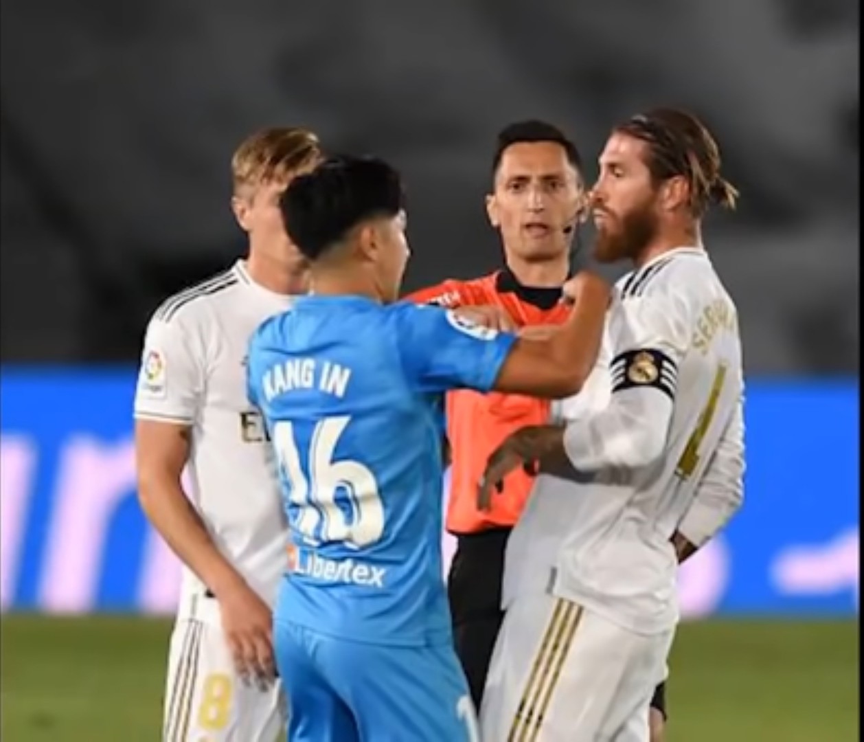 バレンシアMFイ・ガンインが背後から3度蹴りを入れて一発退場