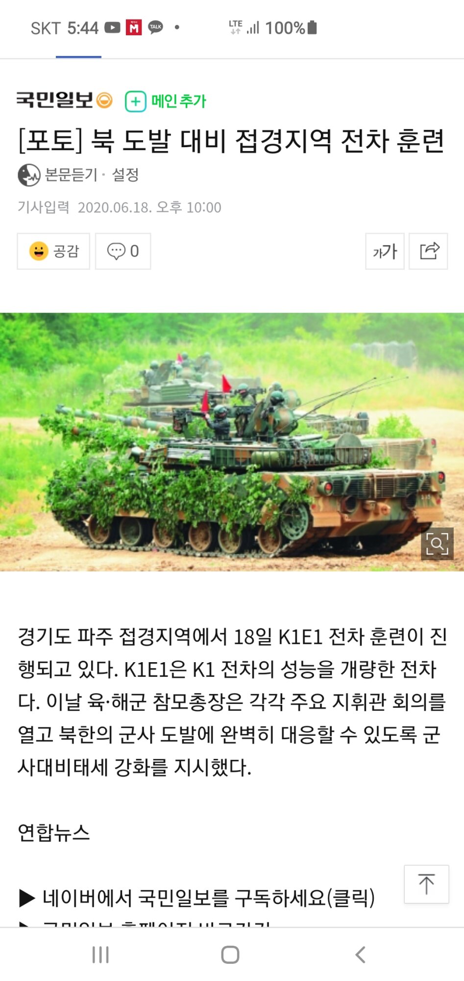 현재 최전방에서는 북한 도발대비 한국군 기갑 부대가 훈련 하고 있다.