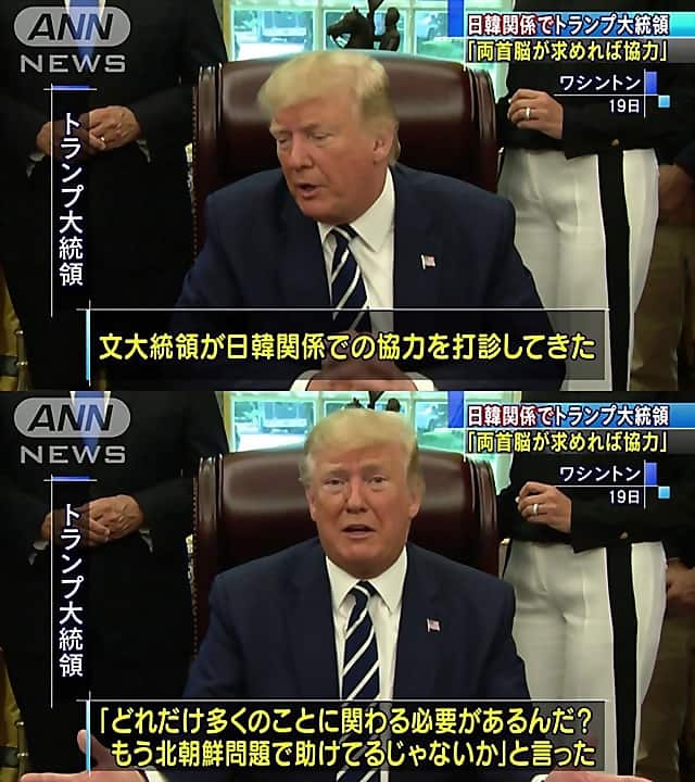 そんな中、トランプ大統領は突然「文大統領が今回の旅行で韓国を訪問してほしいと私に哀願した」と安倍首相に言った。