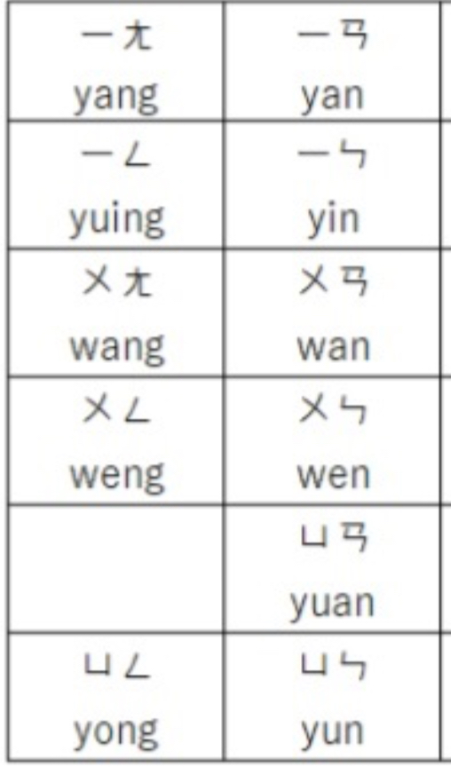 ㄣ 森(ㄙ + ㄣ) 恩(ㄣ) 準(ㄓㄨ + ㄣ) ㄥ 僧(ㄙ + ㄥ) 中(ㄓㄨ + ㄥ)>>1