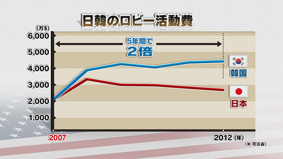日本は安倍が2度めに総理になってからロビー額は増えてるよ韓国人かWTOの事務総長になったら
