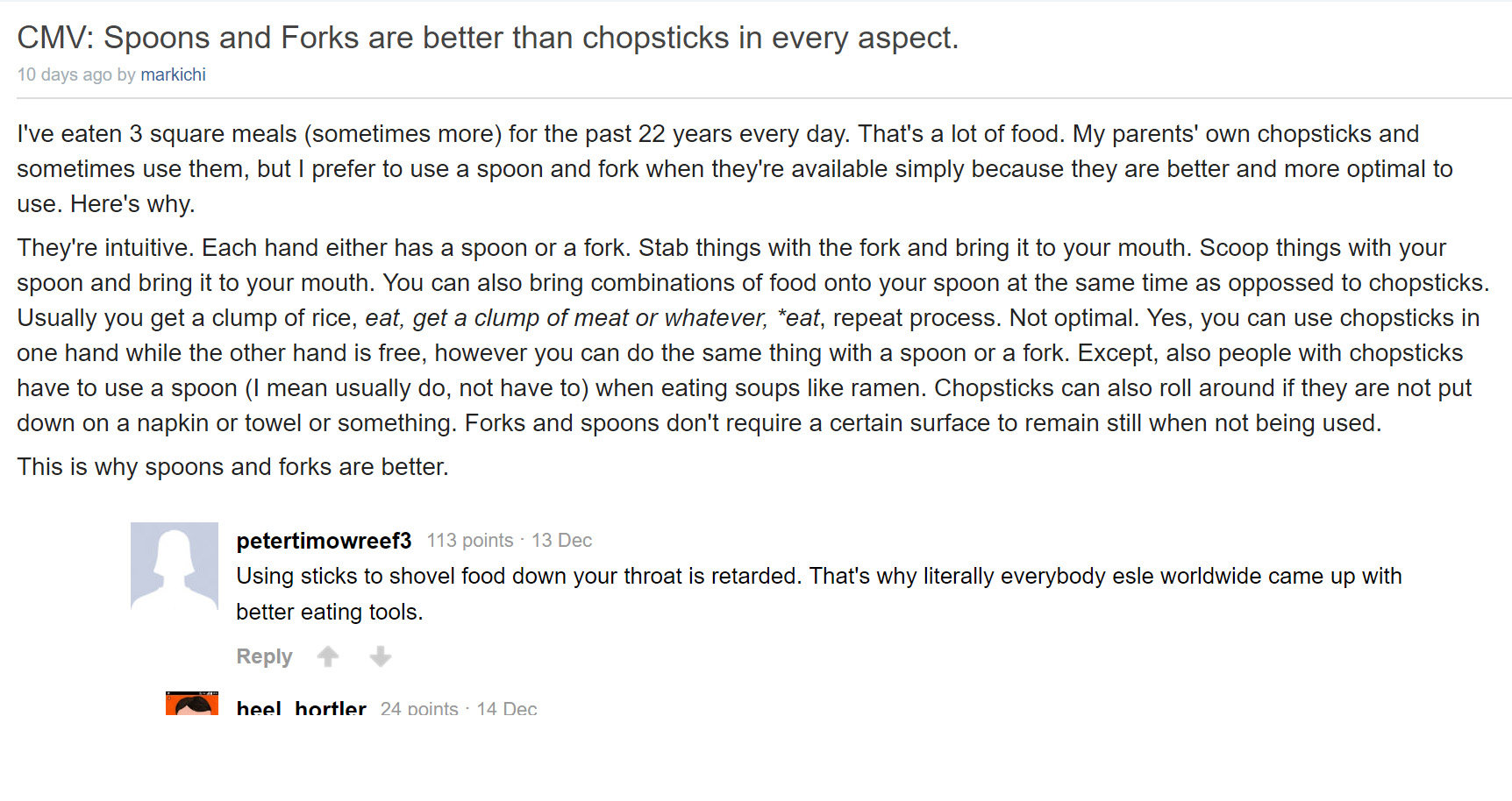 '젓가락은 모든면에서 포크와 스푼에 열등한 도구'