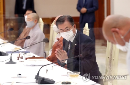 竹島上陸と天皇批判は最後の切り札文在寅大統領、仏教界の指導者らを青瓦台に招待し合掌