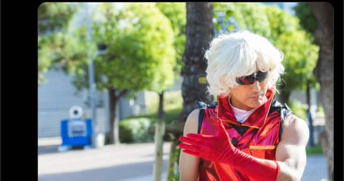 東京・江東区のダイバーシティー東京に鎮座している実物大ユニコーンガンダム立像をバックに山本氏は全身、赤色のコスチュームに金髪、サングラス姿で現れた。岡本氏は「代表、どうかされましたか」とツッコミ。これに山本氏は「特に何もないですが、普段通りですよ」と流したが、クワトロ・バジーナ(シャア)風コスプレで、颯爽とポーズを決め込んだ。