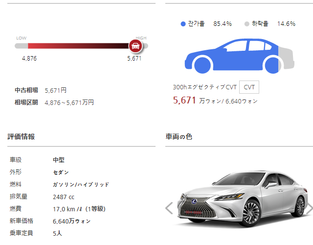 不買運動やってたら日本車の中古車価格が暴落してるのかと思いきや、レクサスES・2年落ちだと、そこそこの値段をキープしてるな。