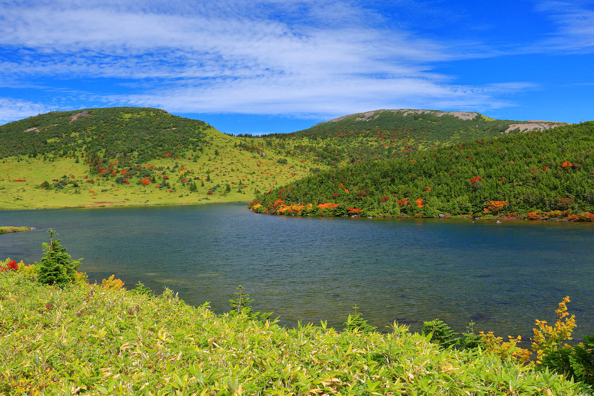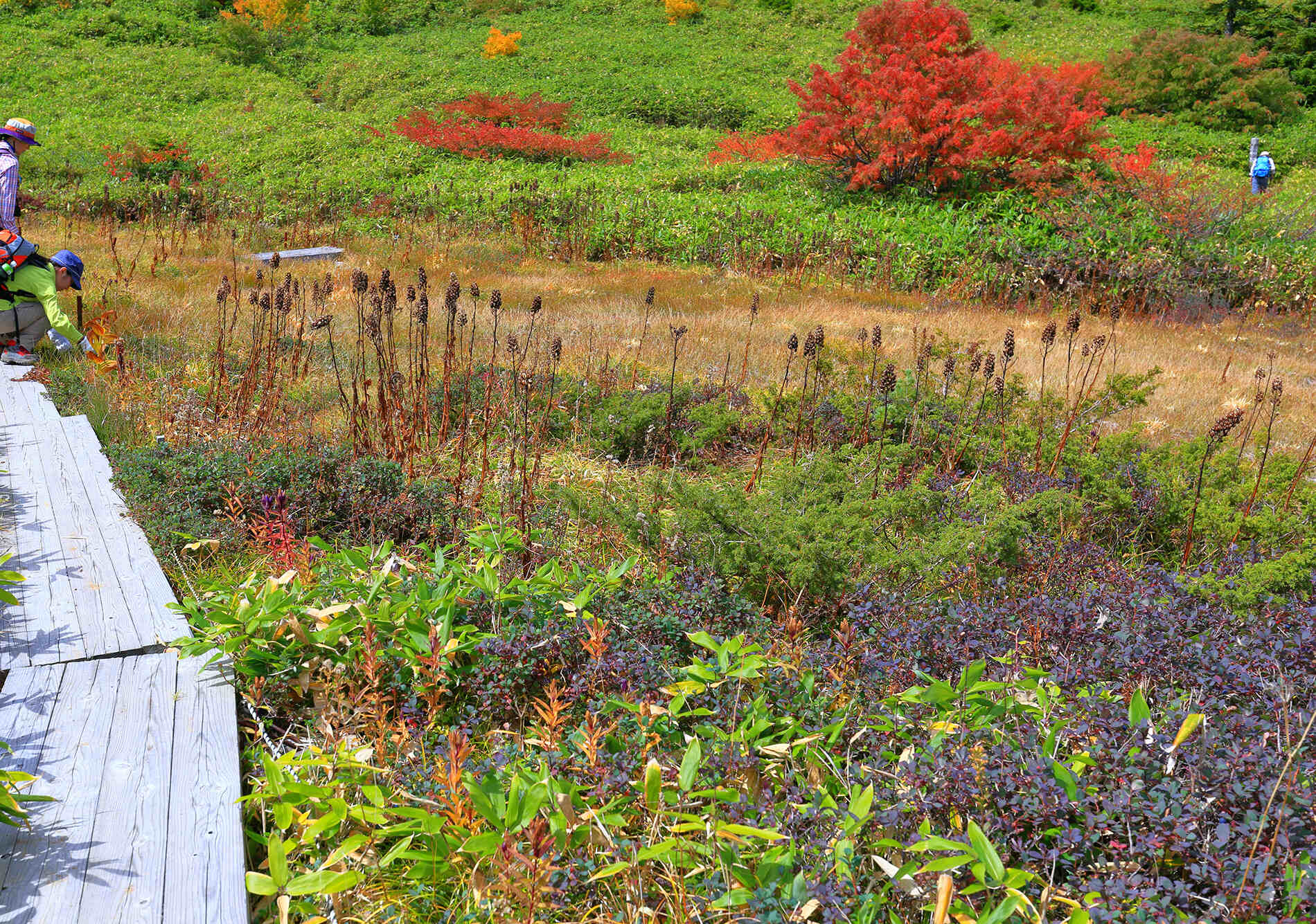 いかに、標高1700m帯の鎌沼付近とは言え、さすがに9月下旬ではあまり紅葉も始まっていませんが、しかし、この時期が福島の桃の中生、晩生の移り変わり時期でもあるので、標高2000mのいち早い紅葉とフルーツ、清涼な空気感で、福島の季節の良い時期なので、強行しております。笑