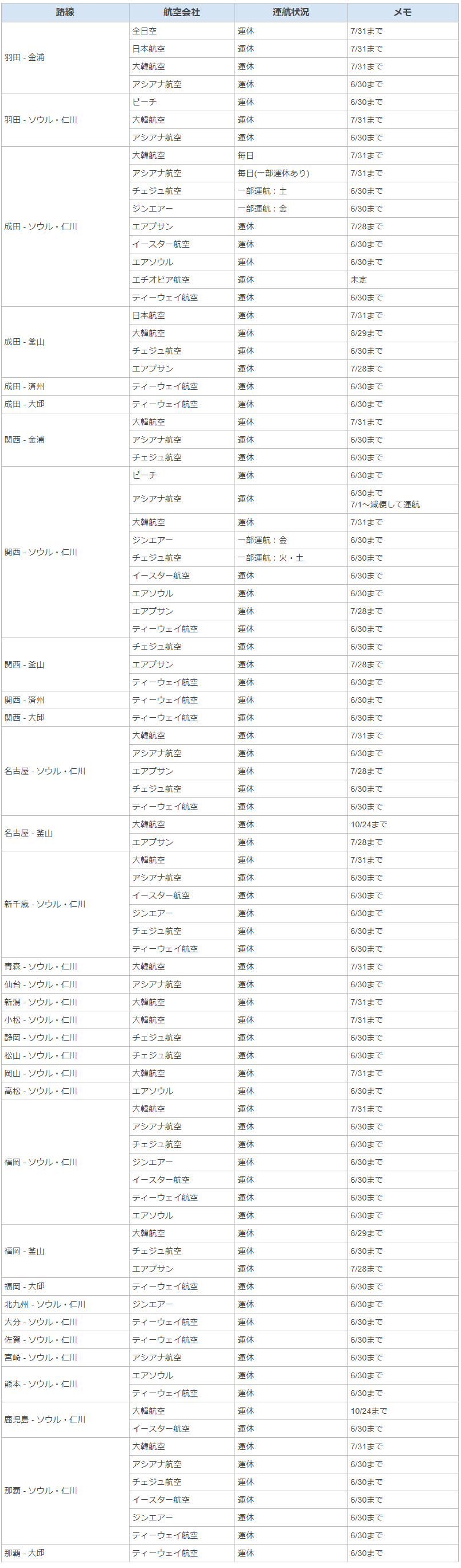 んなもん、借金の額で一目瞭然。韓国路線、計12社の運航・運休状況 6月16日時点 (6/30日以降は調べてない)