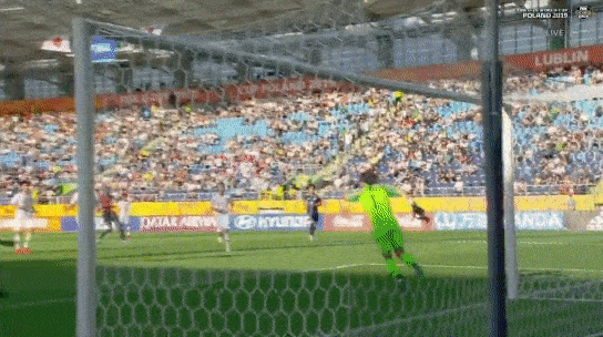 どう見ても、西川が膝(から腹)で合わせたボールが韓国DFの左手に当たっているGIF(Animated) / 1.89MB / 15000ms