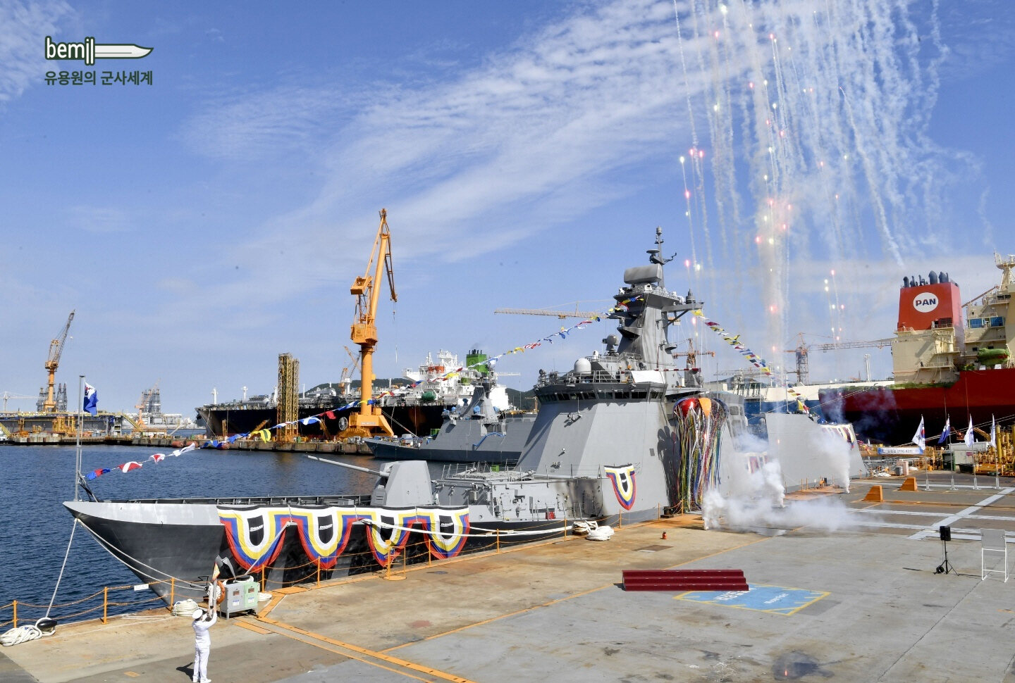 この日の進水式には、ウォン・インチョル合同参謀議長など軍幹部、地元政治家や造船企業社長など40人が参加する。