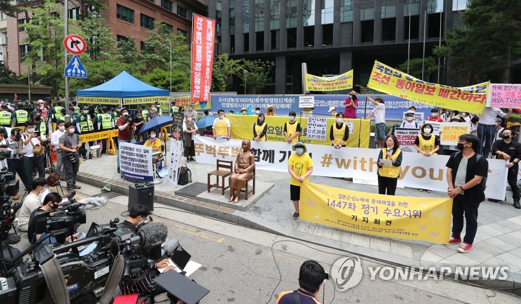 旧日本軍の慰安婦被害者を支援する韓国の市民団体「日本軍性奴隷制問題解決のための正義記憶連帯」(正義連)の李娜栄(イ・ナヨン)理事長は8日、慰安婦問題の解決を求めてソウル・鍾路の日本大使館前で開催した定例の「水曜集会」で、一部のメディアが事実関係と慰安婦運動の歴史を否定していると批判し、歪曲(わいきょく)した報道をやめるよう訴えた。