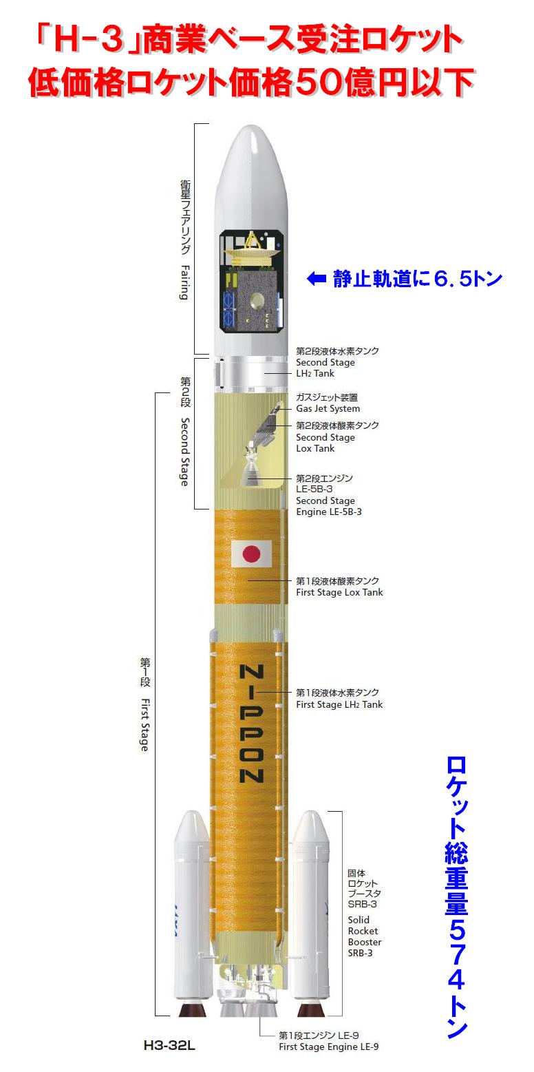 ・「H-3」 ロケット総重量574トン→ 静止軌道に衛星打上げ能力6.5トン>>49