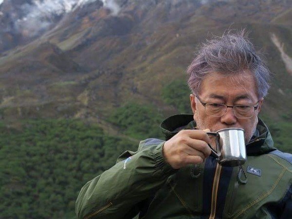 一仕事終えて、コーヒーを飲む文在寅みたい…