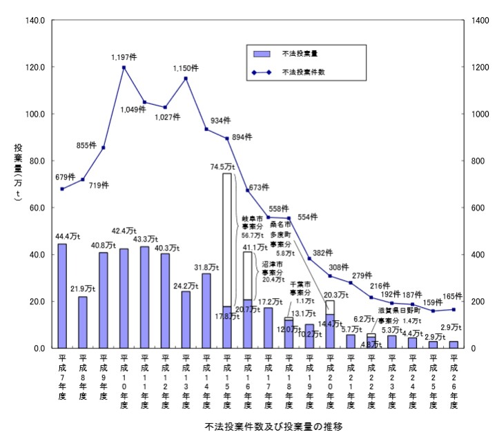 平成15年(2003年)の、廃棄量グラフの白い部分は