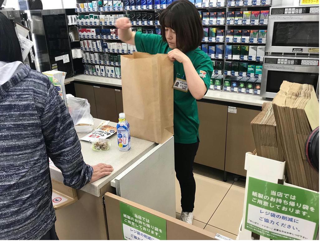 「袋、お願いします」でいいよね。単にマイバックなりもっていけばいいだけだけど、便利さが売りだからな。