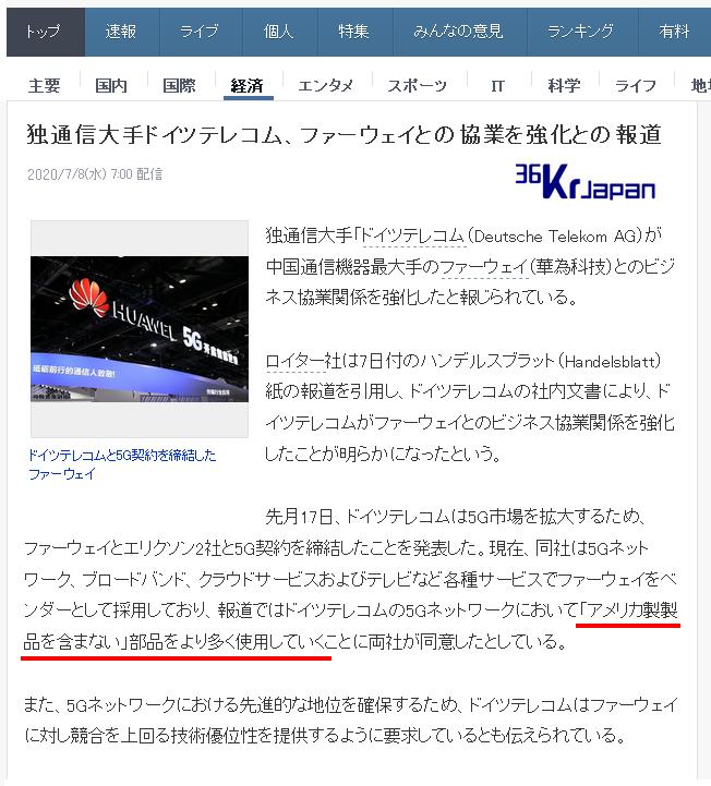 ドイツテレコムがファーウェイと5Gで協力強化「アメリカ部品を使わないことで合意」 2020/07/08