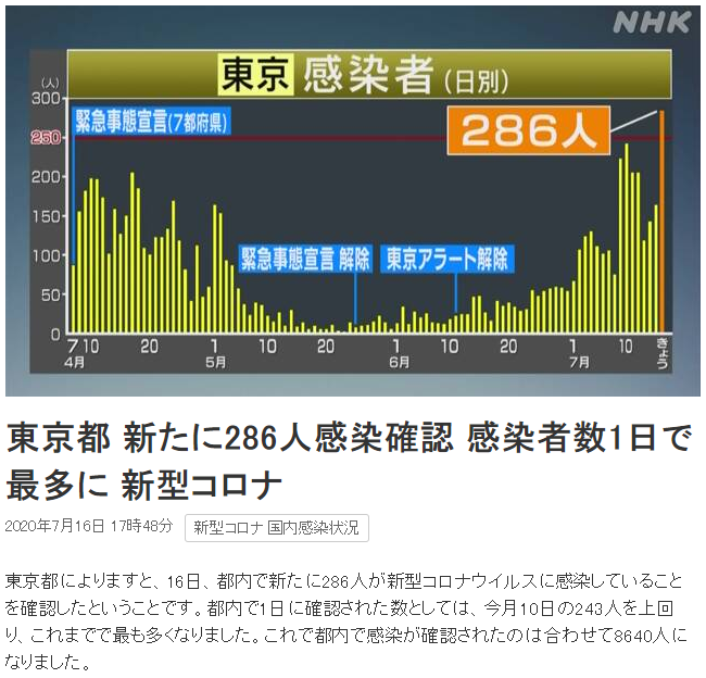 新型コロナウイルスの感染者は15日、全国で新たに452人が確認され、緊急事態宣言が解除された5月25日以降で最多となった。うち13人は空港到着時の検疫で判明し、クルーズ船の乗客乗員らを合わせた国内の感染者数は計2万3691人。東京都で1人が亡くなり、死者は計998人となった。
