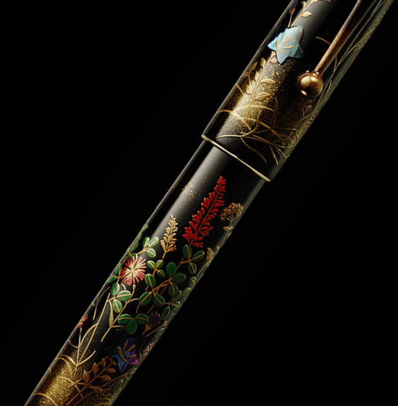 写真は公式Webサイトで拾った秋草の画像をカッコよく斜めにしてみた。中屋万年筆の漆で単色のも深みが有ってよかったなぁ・・。ハイハイ、百貨店の店員に嫌われてるジジイは来ないでね。