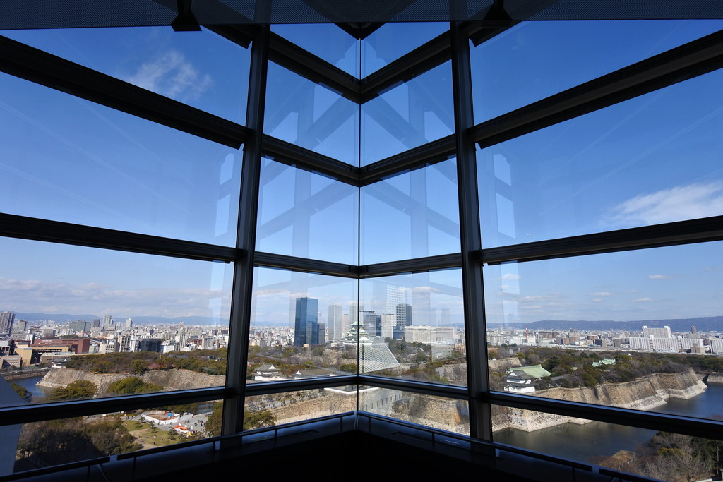 写真:大阪歴史博物館の窓から大阪城を見る。>>46