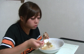 익숙하지 않아서 느낌은 별로입니다..かき混ぜずに、箸で食べる分量を切り出し、丼を持って口元に近付けて、箸で挟むか箸に乗せるかして食べるといいよ。