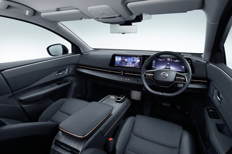 アリアは力強い加速と滑らかな走り、EVの特性を活かした静粛性を兼ね備える。室内はラウンジのような心地の良い高級感あふれるデザインで統一。最新の運転支援機能やコネクテッド技術を搭載し、ドライバーの安心感を高める。最大航続距離は610km(2WD/90kWhバッテリー搭載モデル、WLTCモード日産社内測定値)。毎日の通勤だけではなく、週末のドライブにも十分対応できる実用的な数値を実現している。