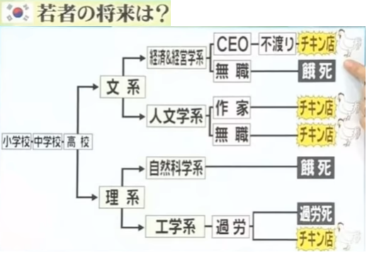 韓国で進学や職場がない韓国人が